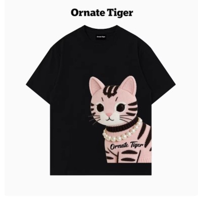 专柜新款Ornate Tiger潮牌设计感韩版印花猫咪纯棉宽松短袖t恤夏