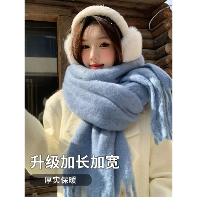 蓝色马海毛针织围巾女秋冬季加厚保暖防寒护颈韩系氛围感围脖披肩