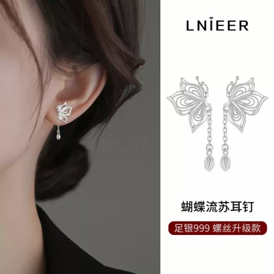 纯银流苏蝴蝶耳钉女2025新款爆款耳环轻奢小众设计新中式耳饰