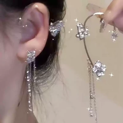 蝴蝶流苏锆石耳挂高级感小众设计轻奢耳骨夹仙气耳夹无耳洞耳饰女