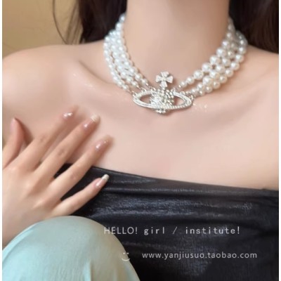 设计感土星珍珠项链女轻奢气质高级感锁骨链多层叠戴重工闪钻颈链