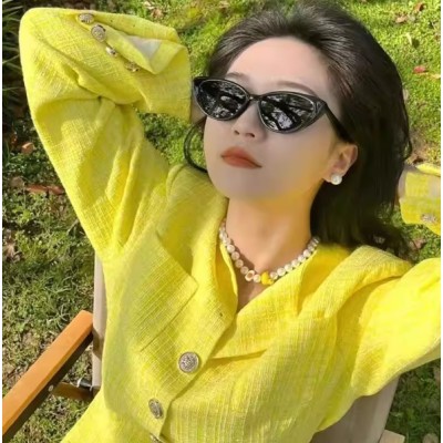 白色猫眼墨镜男女同款防晒防紫外线高级感太阳眼镜开车拍照
