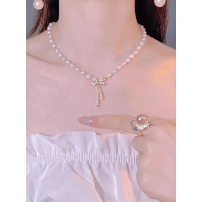 蝴蝶结淡水珍珠项链女款2025新款锁骨链高级感轻奢小众颈链配饰