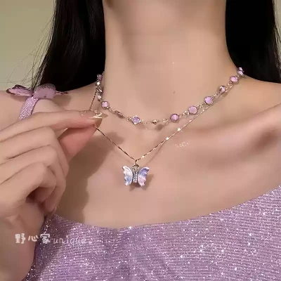 野心家原创【粉春蝶梦】演唱会叠戴项链紫色蝴蝶choker小众高级感