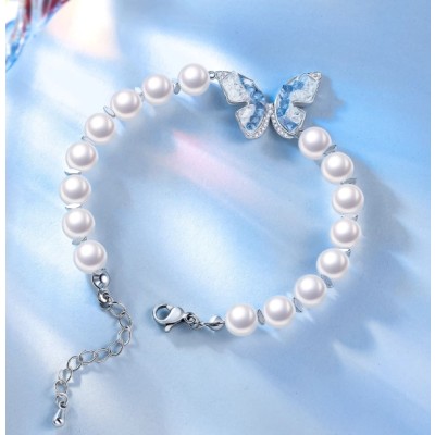 冰晶蝴蝶春夏珍珠手链女小众设计高级感串珠小清新手串浅蓝色饰品