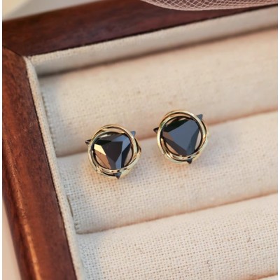 气质名媛黑色锆石三角耳钉纯银高级2025新款爆款耳夹轻奢小众耳饰