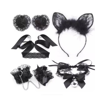 蕾丝眼罩猫耳套装女面罩黑色性感禁欲系遮光丝带睡眠手铐情调发箍