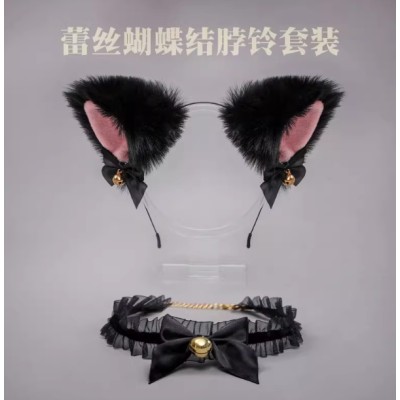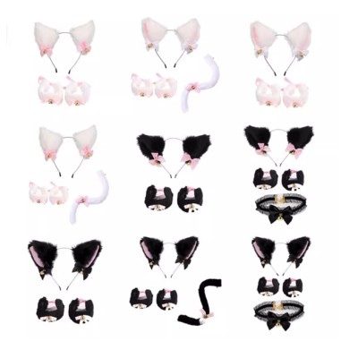 猫耳朵铃铛发箍手环颈圈套装猫尾巴套装兽耳头饰道具头箍cos配饰