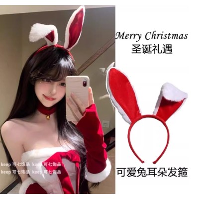 圣诞节头饰红色兔女郎发箍秋冬毛绒头箍cos装扮兔耳朵拍照发饰品