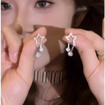 心动双流镂空星星水钻耳钉女2025新款爆款镶钻高级感设计耳坠耳饰