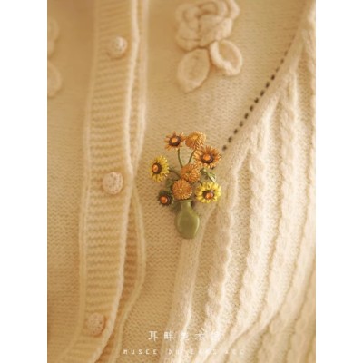 母亲节向日葵油画森系植物胸针送人礼物小众设计高档女胸花别针