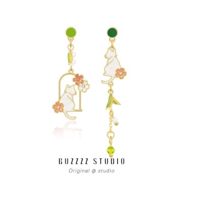 看樱花小猫长 春季长款气质2026新款出游不对称小众设计耳钉耳夹