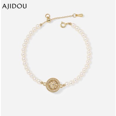 AJIDOU阿吉豆手链女款复古八芒星珍珠手饰手串珠精致生日礼物首饰