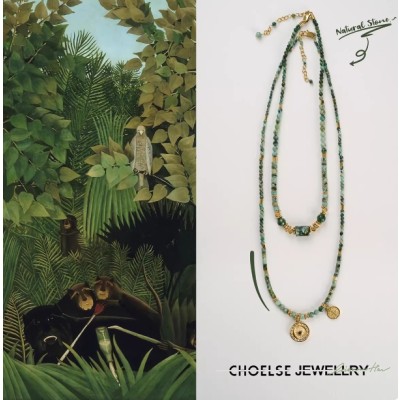 止肆丨设计师款绿色松石中古衣服配饰毛衣链国风新中式复古女项链