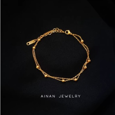 2022新款18K包金双层小金豆脚链女款简约百搭通勤不褪色饰品