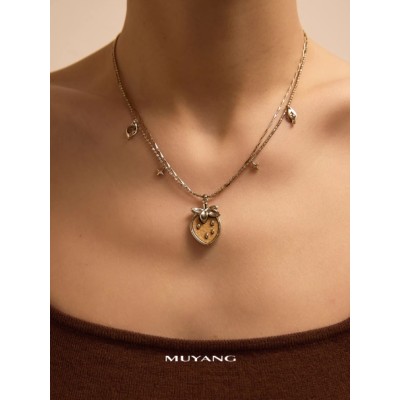 慕阳MUYANG草莓项链女款双层高级感轻奢小众吊坠简约秋冬配饰饰品