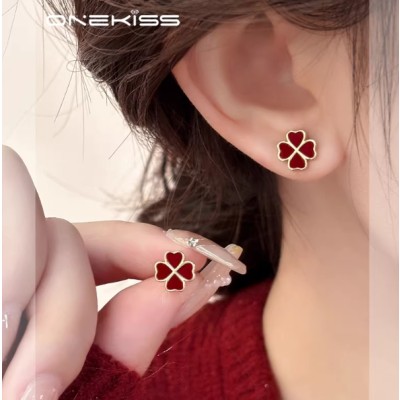 S999纯银新年红色三叶草耳钉小众设计高级感耳环2025新款爆款耳饰