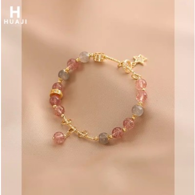 花迹草莓晶灰月光石手链女小众设计感手镯闺蜜生日礼物