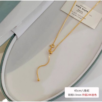 万能链毛衣链18k金项链素链可穿吊坠金链子金色