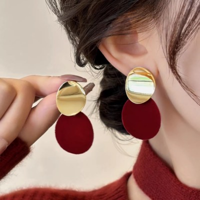 安可拉红不对称圆片耳环纯银小众独特丝绒耳钉2025新爆款高级耳饰