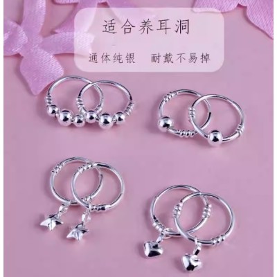 999纯银耳环耳钉女 足银养耳洞防堵睡觉不用摘耳饰品耳骨环耳圈扣