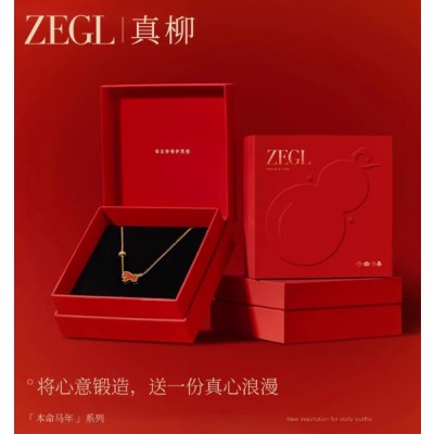 ZEGL小马作马年本命年红玛瑙项链女925银锁骨链红色吊坠新年礼物