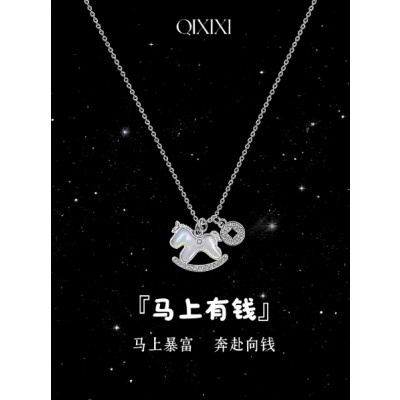 马上有钱白贝母项链女2026马年本命年新款轻奢小众配饰礼物送女友