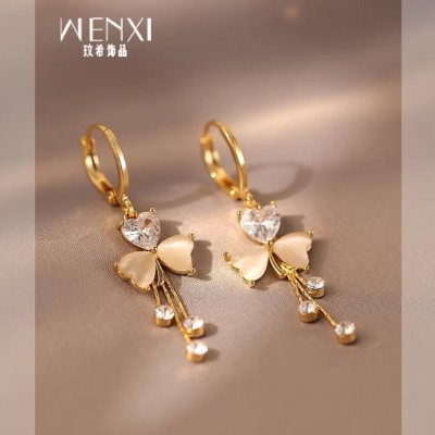 轻奢三叶草耳环2026年新款小众设计感高级流苏耳扣女气质秋冬耳饰