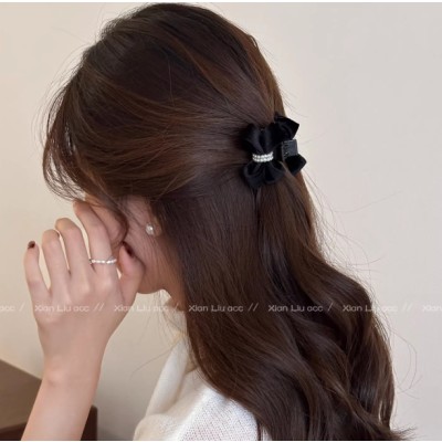 法式赫本风珍珠蝴蝶结抓夹女款半扎发公主头发夹