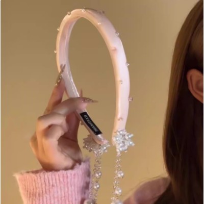 仙女粉水钻珍珠流苏发箍早春新中式高级感缎面头箍假耳环发饰头饰