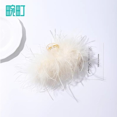 畹町羽毛抓夹超仙ins纯欲风毛毛抓夹高级感鲨鱼夹发夹后脑勺头饰