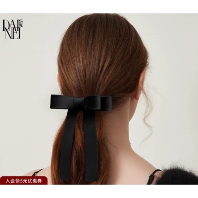 DAINEI岱妮倚丽优雅蝴蝶结发夹黑色飘带半扎发弹簧夹甜美横夹发饰