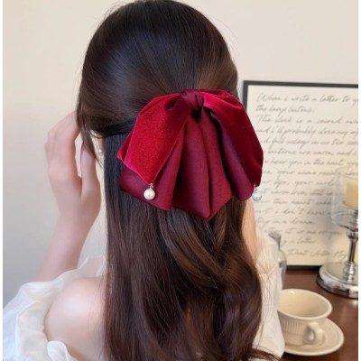 韩系复古丝绒蝴蝶结发夹新年红氛围感气质抓夹后脑勺盘发发夹发饰