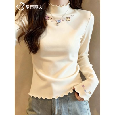 都市丽人木耳边绒德打底衫女内搭冬季2026新款高级感保暖长袖t恤