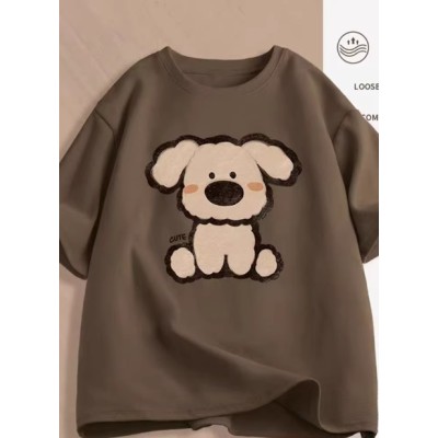 棕色常规款上衣短袖女t恤新款宽松女装夏日穿搭chic小衫小众T圆领