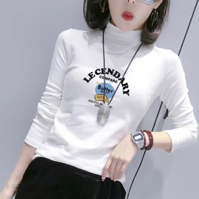 半高领打底衫女秋冬加薄绒新款纯棉女士内搭小t恤长袖磨毛厚上衣