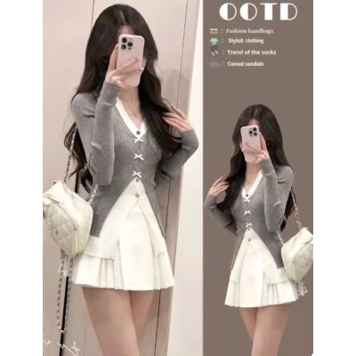 小个子秋冬温柔风套装女减龄蝴蝶结优雅显瘦气质针织衫短裙两件套