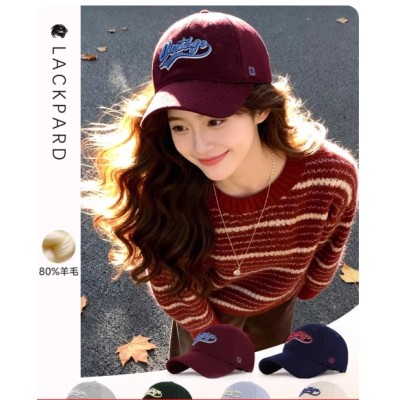 lackpard羊毛棒球帽女新款秋冬男百搭保暖帽子立体刺绣鸭舌帽红色