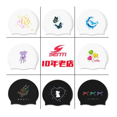 韩国SENTI/森缇防水硅胶泳帽女时尚印花高弹不勒头男女通用游泳帽