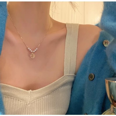 平安福牌天然淡水珍珠吊坠项链女2025年新款小众设计感高级锁骨链