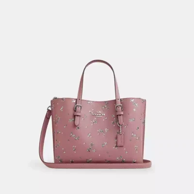 蔻驰女士托特包拉链开合内部隔层大容量可装长钱包粉色