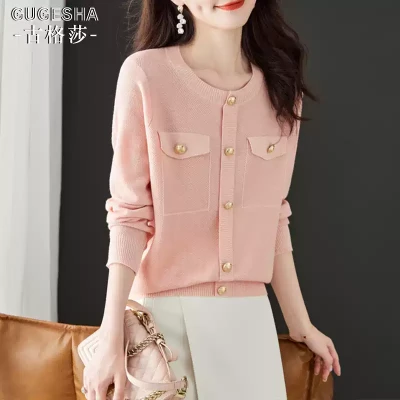 温柔小香风圆领毛衣女士秋冬新款洋气漂亮针织打底衫减龄甜美上衣
