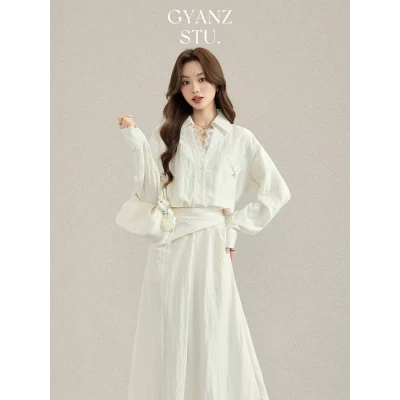 高妍知法式蕾丝花边长袖衬衫连衣裙女秋季新款巨好看的气质长裙子