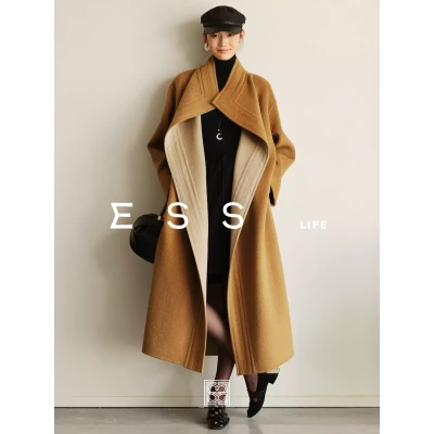 2025秋冬新款双面呢大衣女中长款宽松显瘦外套