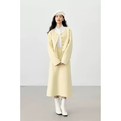 圆领双面羊毛呢大衣女2025秋冬季新款千金风外套两件套套装