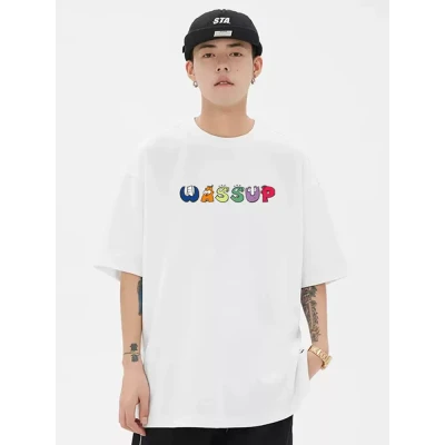 WASSUP HEODS潮牌卡通字母短袖T恤男女夏季纯棉重磅宽松情侣半袖