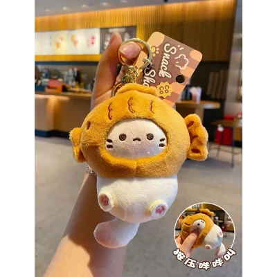 正版毛绒可可猫鲷鱼烧钥匙扣书包挂件日系软萌公仔挂饰学生小礼品