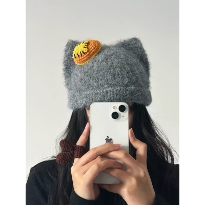 可爱猫耳帽毛绒钩针diy钩织材料包秋冬保暖护耳毛线帽百搭显脸小
