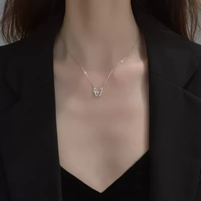镂空蝴蝶镶钻项链女ins潮网红气质锁骨链小众设计感简约森系颈链
