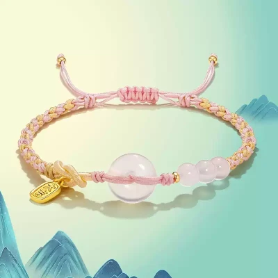天然玉髓白玛瑙平安扣男女闺蜜情侣款手链一对手绳情人节礼物